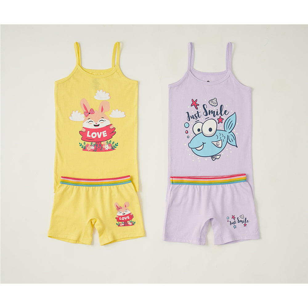 طقم تانك توب +شورت مطبوع بناتى باك 2 ق